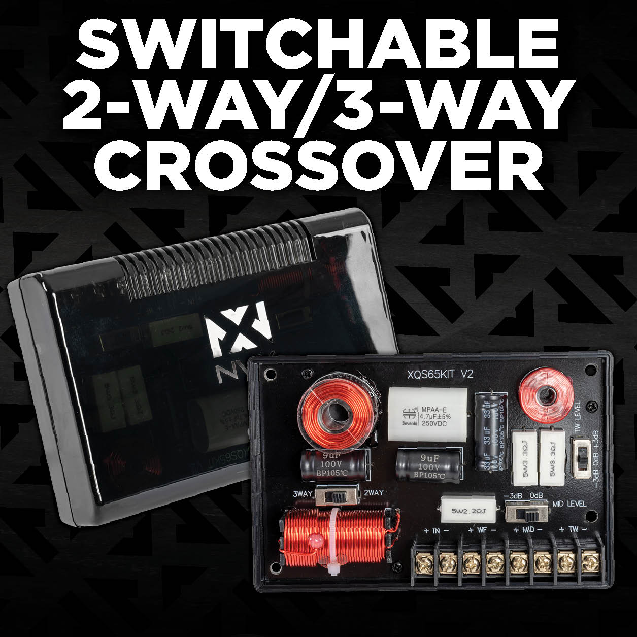• Upgrade to a 3-way system by incorporating XQS3v2 3.5" or XQS2 2.5" midrange speakers (Sold separately)