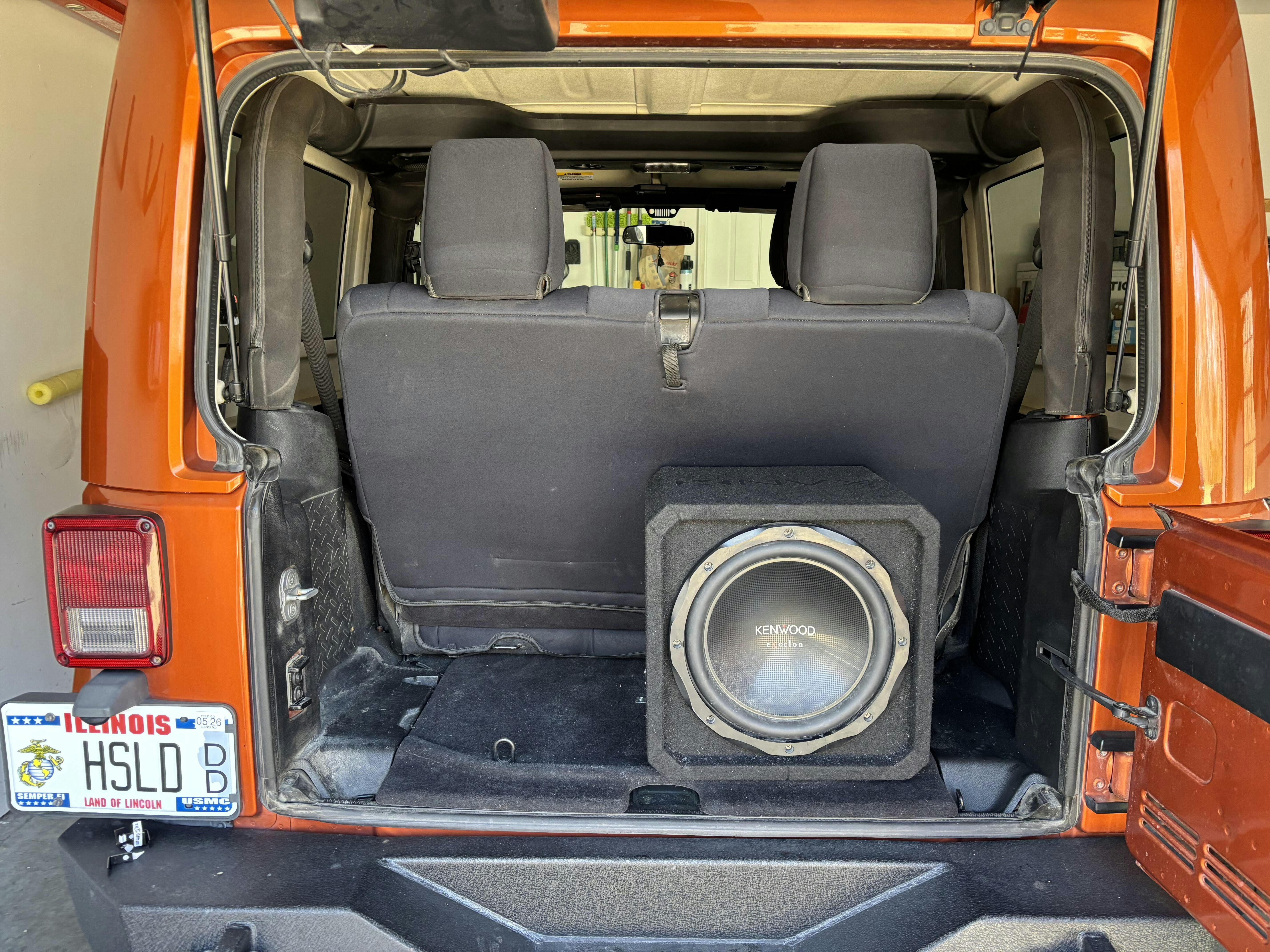 Replaced the sub box that came with the jeep to make more space. The box is nice! It could just a bit more shallow, but that has nothing to do with the quality!